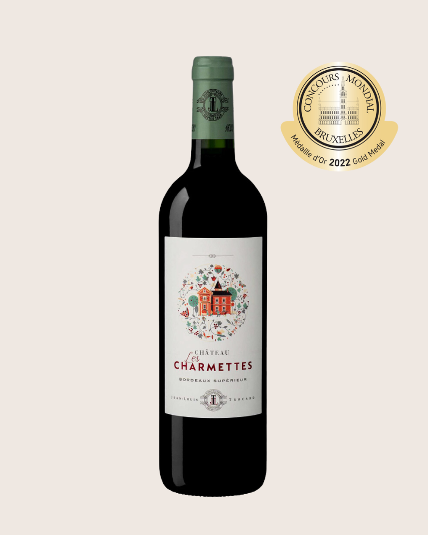 Château Les Charmettes epitomizes elegance and quality. Crafted with care, it reflects its terroir on gravelly hillocks in Artigues de Lussac. Unique flavors from ferruginous subsoil. Aged 18 months, it's enjoyable now and ages beautifully for 4-5 years. Timeless wine.
